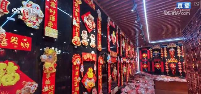 记者在义乌小商品城的喜庆用品专区发现,许多抢手样式的福字年画早已售罄。义乌作为节庆用品的“风向标”,能让人提早了解2025年的盛行趋势和热销产品。